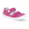 Ultra lehké sandálky, které jsou i dostatečně otevřené a dýchají, přesto mají ochranu na prstíky. Jsou spíše na úzkou nohu nebo ne uplně širokou "ploutvičku". Mají hravé edukativní prvky, aby se dětem lépe nazouvaly a spárovala levá a pravá. Protiskluzový vzorek.