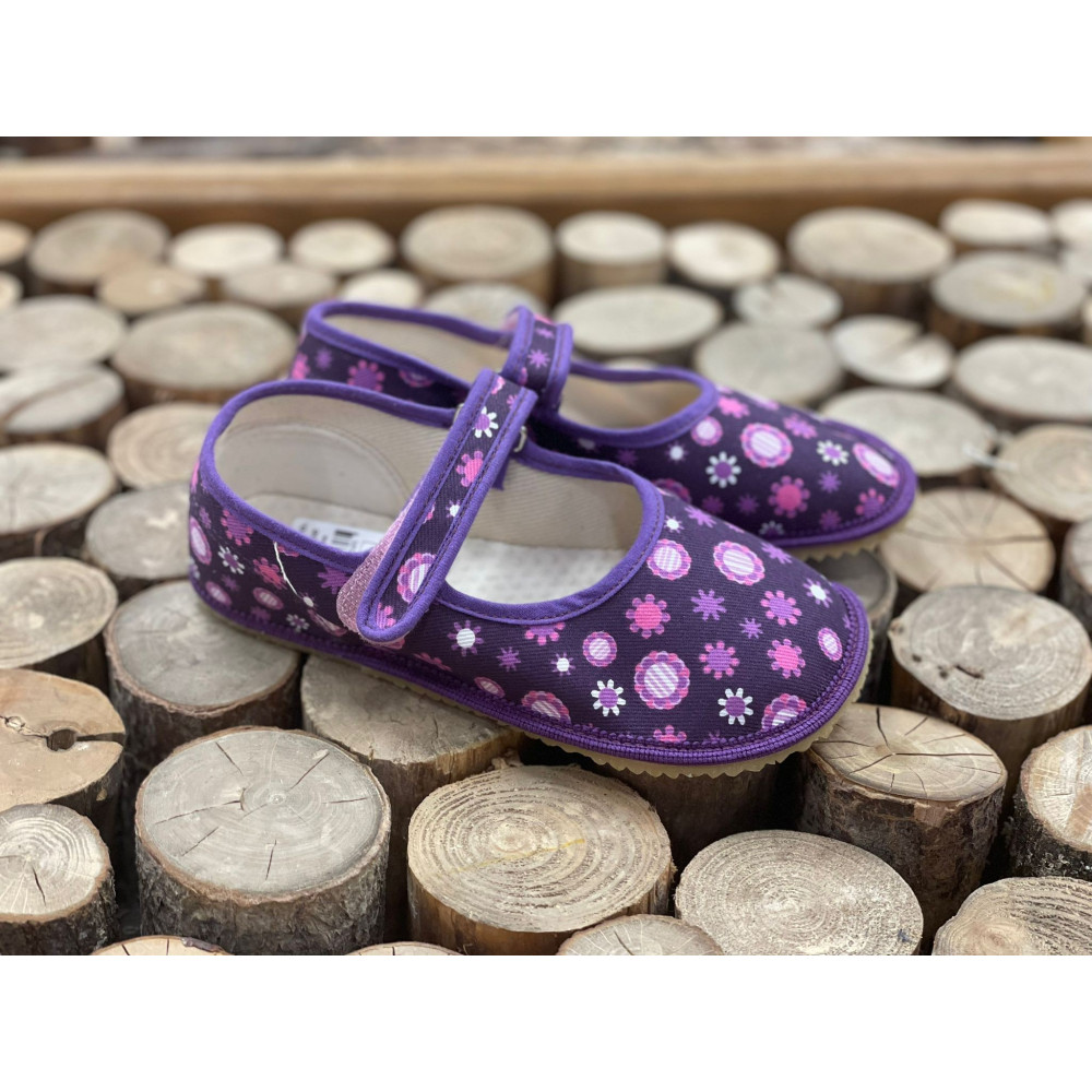 Beda Barefoot bačkory BALERÍNY - fialové kvítko Violet Flower