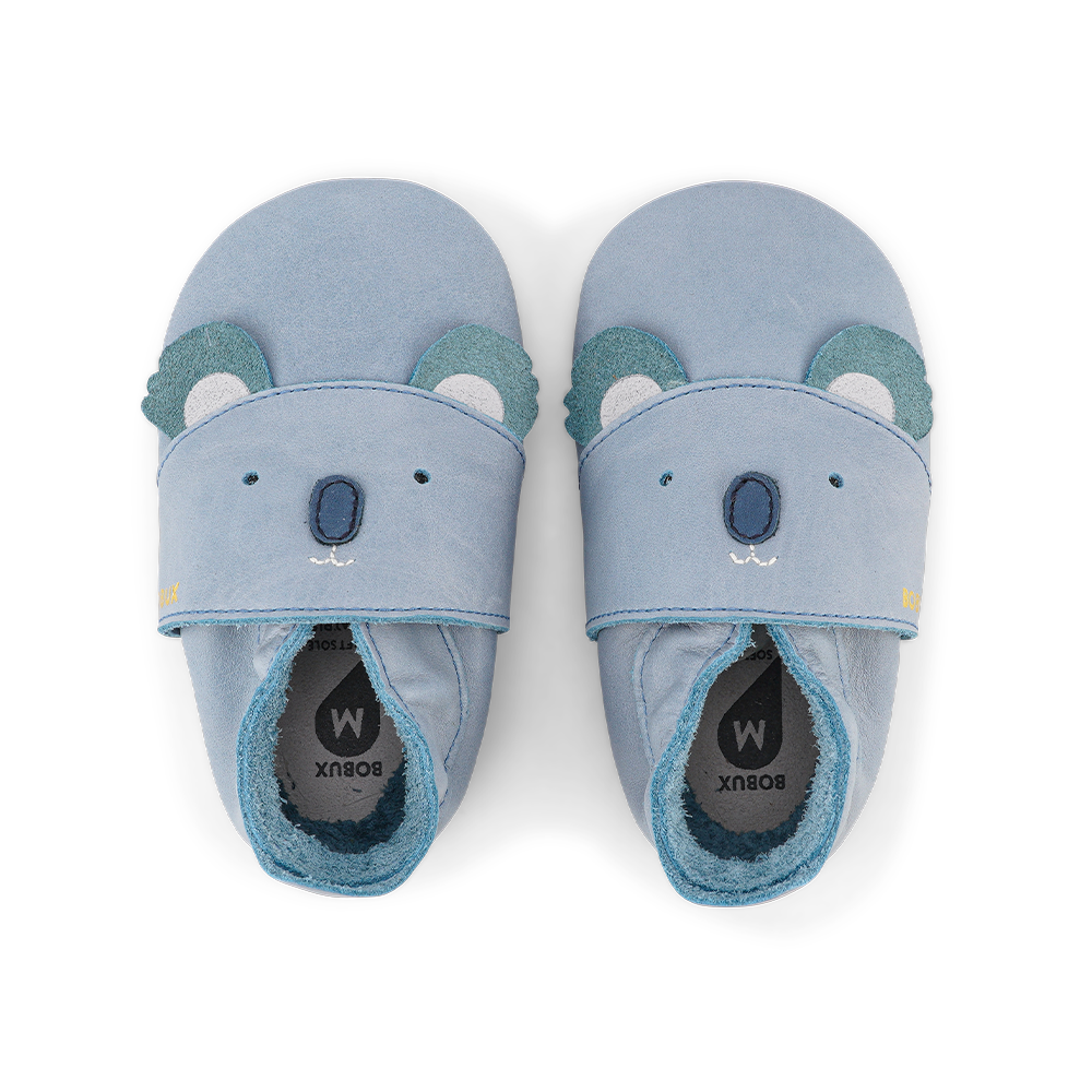 Dětské capáčky od značky Bobux, vhodné pro začínající chodce. S koženým svrškem, odspodu semišová kůže. Kolem kotníku je gumička. Vhodné jako přezůvky, na doma, na hřiště pro první krůčky, do herniček, do kočáku, nosítka atp.