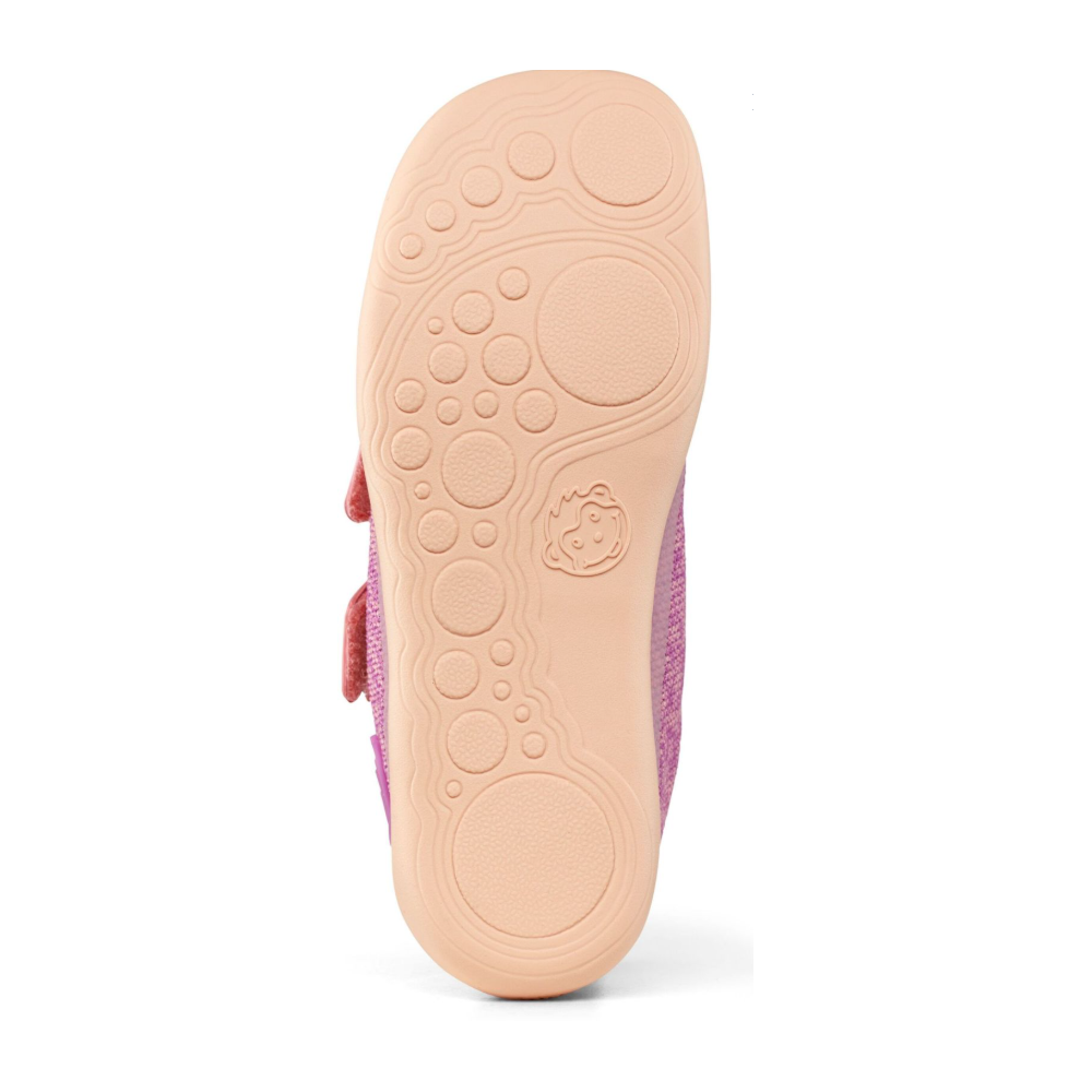 Ultra lehké sandálky, které jsou i dostatečně otevřené a dýchají, přesto mají ochranu na prstíky. Jsou spíše na úzkou nohu nebo ne uplně širokou "ploutvičku". Mají hravé edukativní prvky, aby se dětem lépe nazouvaly a spárovala levá a pravá. Protiskluzový vzorek.