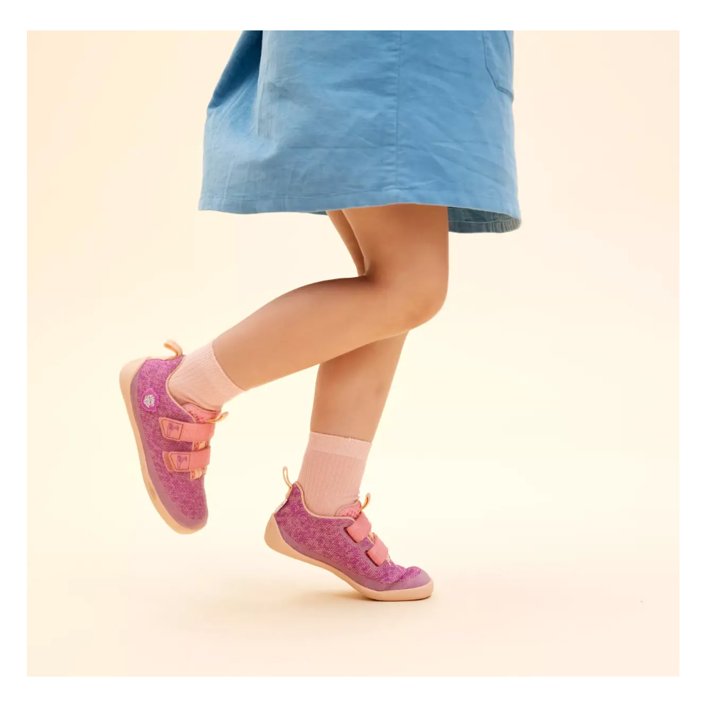 Affenzahn Happy Knit jsou vychytané botky pro starší děti. Jsou vhodné na úzkou nohu, jsou prodyšné a mají opravdu tenkou podrážku! Mají dobré tření materiálu podrážky. Jsou měkčí a lehčí než leckteré jiné BF značky. Krom toho jsou z příjemného přizpůsobivého prodyšného materiálu s ochranným pogumováním nad podrážkou, aby na špičce hned nepromokly.