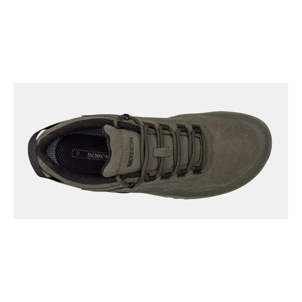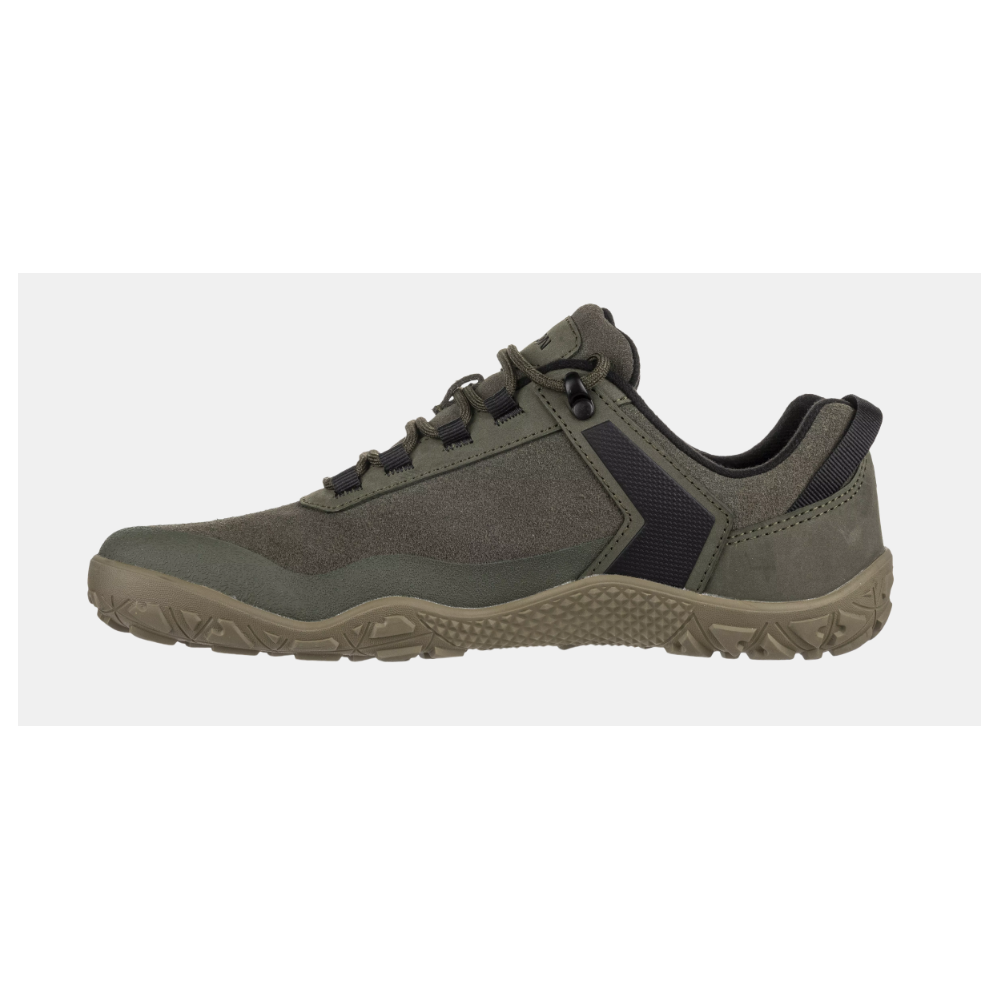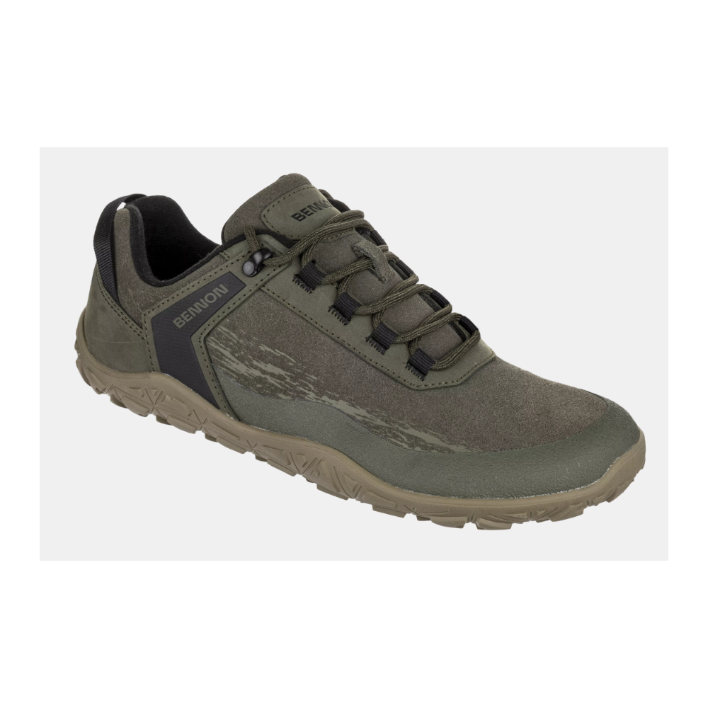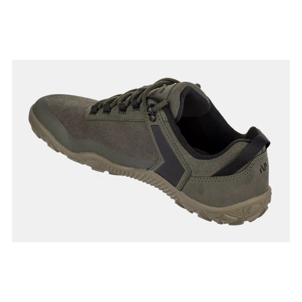 Volnočasová outdoor barefoot obuv nabízí maximální pohodlí a ochranu i v terénu. Svršek je vyroben z hovězinové štípenky, odolného přírodního materiálu, který se přizpůsobuje pohybu chodidla a zajišťuje dlouhou životnost. Prodyšná podšívka z textilie MESH udržuje příjemné klima i při delším nošení. Díky tvarované patní misce poskytuje dostatečné pohodlí při došlapu na patní kost. Obuv respektuje anatomický tvar chodidla, prstům dává dostatek prostoru a podporuje přirozený pohyb. Díky kombinaci kvalitní usně a funkčních materiálů se hodí nejen pro volný čas, ale i pro lehké až středně náročné outdoorové aktivity.