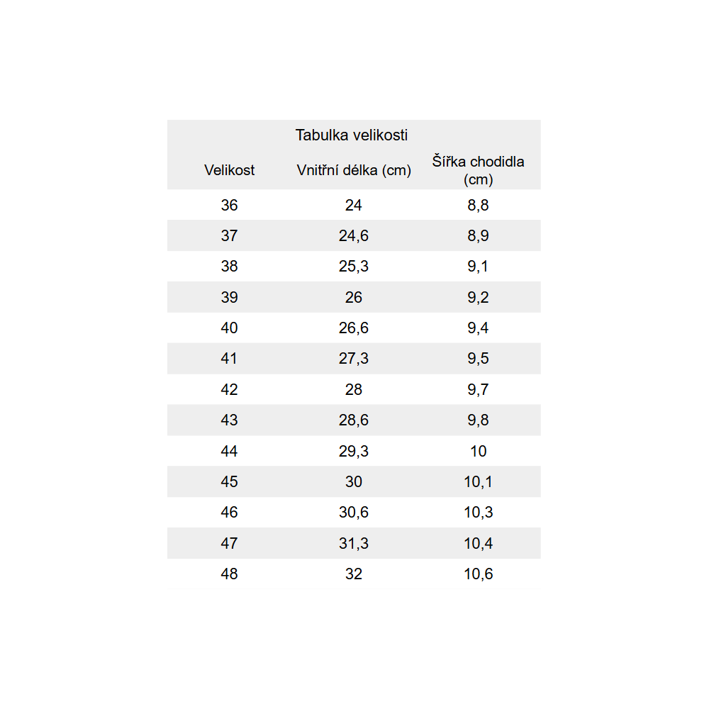 Prostorné, vhodné na střední až širší nohu, kolem kotníku lze dobře dotáhnout.