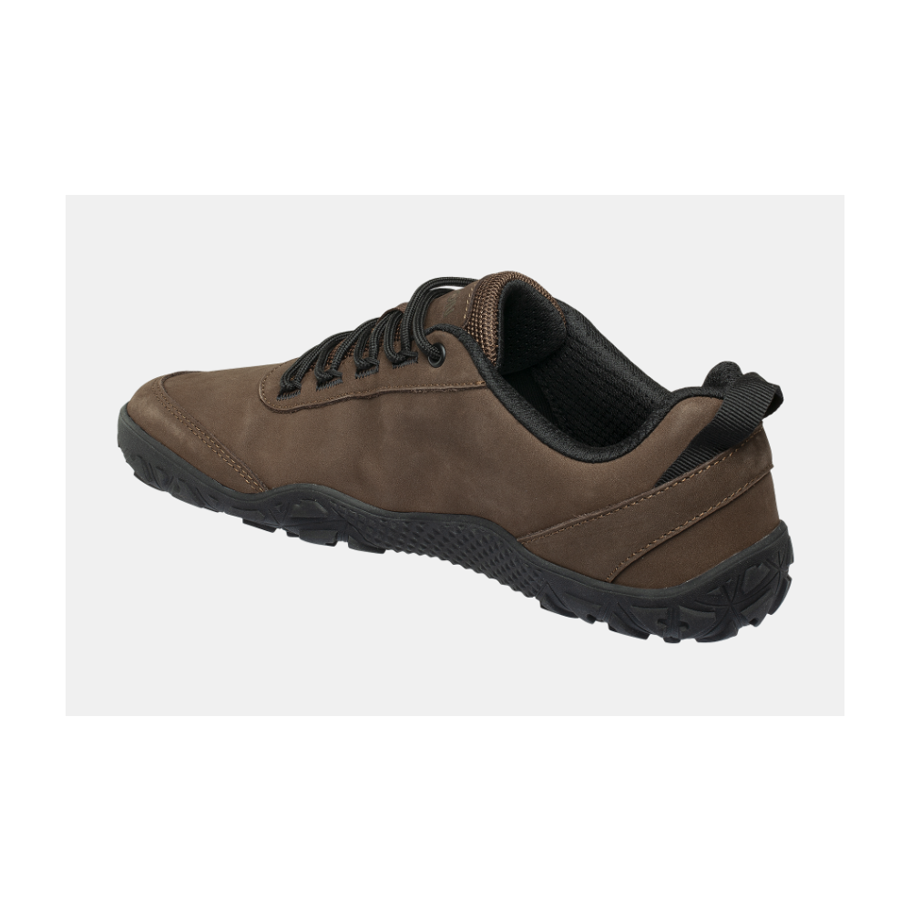 Volnočasová outdoor barefoot obuv nabízí maximální pohodlí a ochranu i v terénu. Svršek je vyroben z kvalitní nubukové kůže, takže se hodí jako univerzální boty do práce, města, na procházku nebo do terénu. Díky tvarované patní misce poskytuje dostatečné pohodlí při došlapu na patní kost. Obuv respektuje anatomický tvar chodidla, prstům dává dostatek prostoru a podporuje přirozený pohyb. Díky kombinaci kvalitní usně a funkčních materiálů se hodí nejen pro volný čas, ale i pro lehké až středně náročné outdoorové aktivity.
