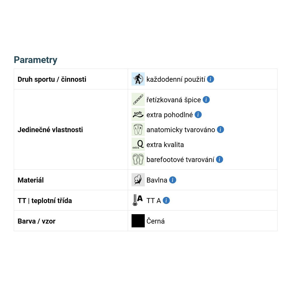 Mají širokou prstovou část a anatomické tvarování na levou a pravou nohu. Vhodné pro nošení v barefootové obuvi! Špička ponožky je uzavřena náročnějším řetízkováním, díky kterému je spoj dokonale hladký a nehrozí, že ponožka bude tlačit.